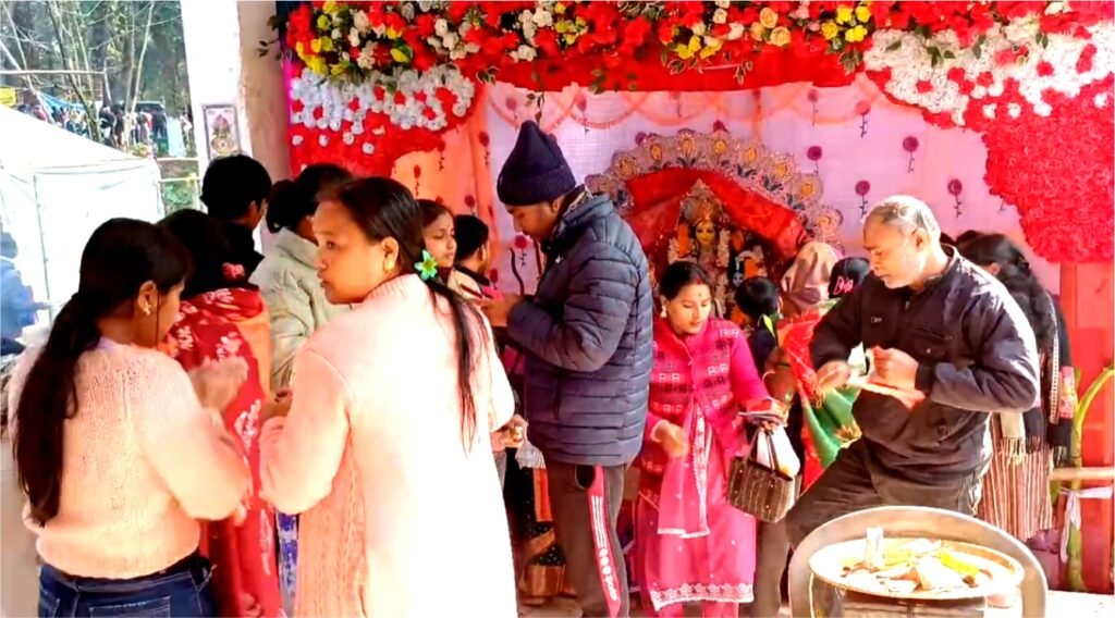 শিলিগুড়ি,৩ জানুয়ারী: শিলিগুড়ি সংলগ্ন বৈকুণ্ঠপুর জঙ্গলের গভীরে অবস্থিত দিল্লিভিটা–চাঁদের খাল এলাকায় প্রতি বছরের মতো এবছরও যথাযথ ধর্মীয় আচার–অনুষ্ঠানের মধ্য দিয়ে পালিত হল বনদুর্গা পূজা। সাধারণ মানুষের কাছে এলাকা তেমন পরিচিত না হলেও বনদুর্গা মন্দির হিসেবে এই স্থানের রয়েছে আলাদা ঐতিহ্য ও ধর্মীয় মাহাত্ম্য।