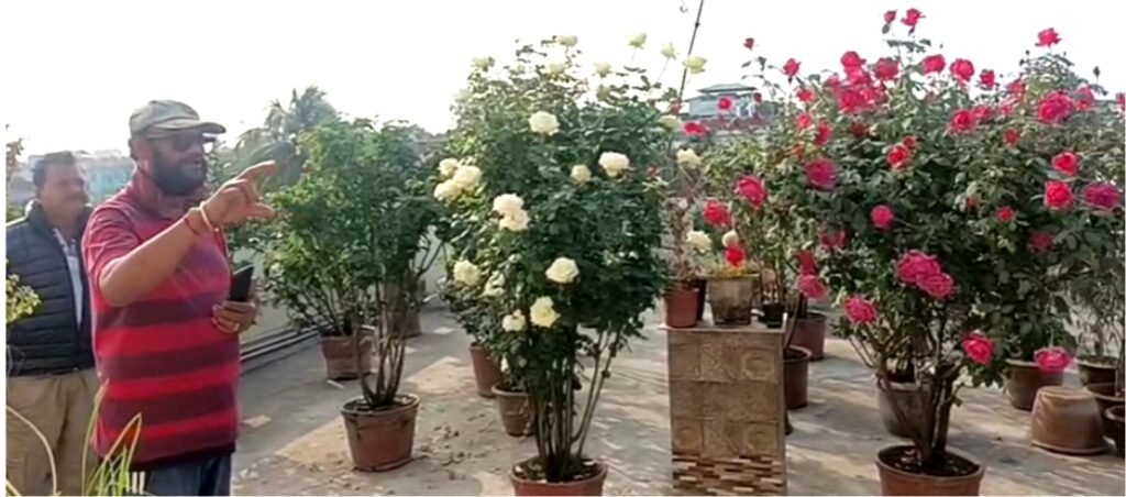 শিলিগুড়ি,৩১ ডিসেম্বর: শিলিগুড়ি শহরের কোলাহল থেকে একটু আলাদা এক টুকরো রঙিন স্বপ্ন গড়ে তুলেছেন আশ্রমপাড়া এলাকার বাসিন্দা অশোক সরকার। নিজের বাড়ির ছাদেই তৈরি করেছেন চোখধাঁধানো গোলাপের বাগান। দেশি ও বিদেশি নানা প্রজাতির গোলাপ ফুলের গাছে সাজানো এই ছাদ এখন যেন এক অনন্য সবুজ-রঙিন উদ্যানে পরিণত হয়েছে।