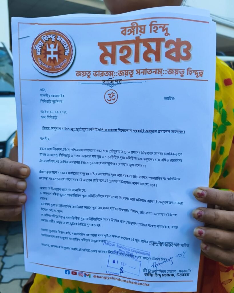 বঙ্গীয় হিন্দু মহামঞ্চের দাবি, সরকারের উচিত উৎসবের সময় কেবলমাত্র বড় ও নামী পূজা কমিটি নয়, বরং সমাজের প্রত্যন্ত স্তরে থাকা ছোট ও পাড়াভিত্তিক পূজা সংগঠনগুলির প্রতিও নজর দেওয়া।